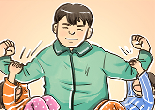 축 늘어진 어깨는 퇴근 후, 자식들의 함박웃음으로